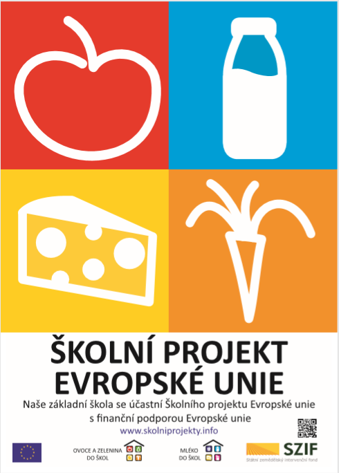 V letošním školním roce dostanou žáci 1. stupně vitamínovou podporu v podobě čerstvého ovoce, zeleniny nebo ovocných šťáv. Tato podpora je pro žáky školy zcela zdarma. Náklady jsou plně kryty z evropského programu „Školní projekt (EU)“ – Ovoce do škol. Zahájení v letošním školním roce je od listopadu.